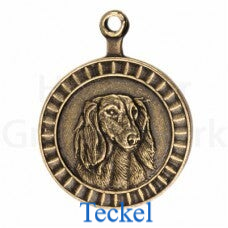 Bronzen rashondenpenning, geleverd met messing sleutelring. Deze penning is 25 mm diameter. Voor maximaal 3 regels tekst. Het graveren van 3 regels tekst is inbegrepen in de prijs.
